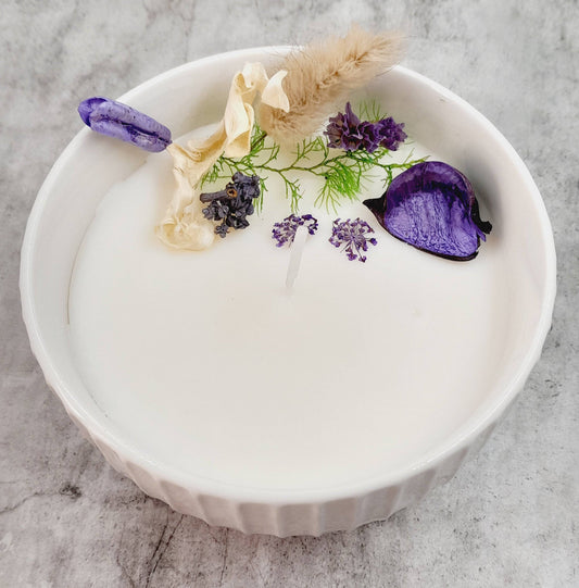 Bougie parfumé message caché - fleur séchées nuances de jaune orange