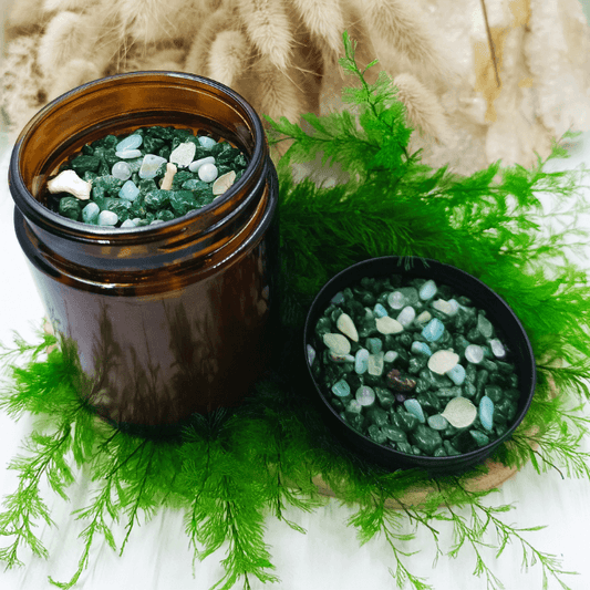 Allumez une bougie et créer vous un espace chaleureux, donner une ambiance particulière à votre intérieur. Les bougies aux pierres précieuses de la collection Sorcière moderne de Sérenity Bougies ont pour but d'apporter une touche de magie en racontant une jolie histoire qui vous permettra de poser l'intention de votre projet."