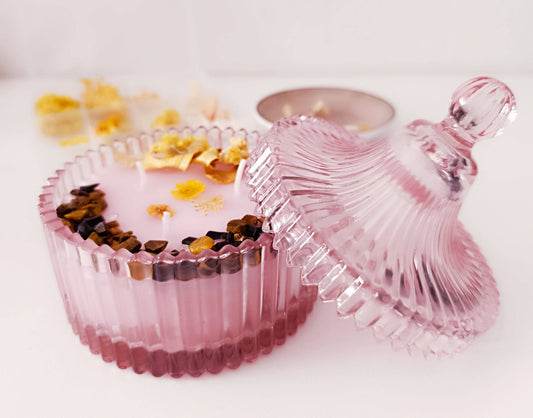 Bougie énergétique Rituel AMOUR pierres naturelles