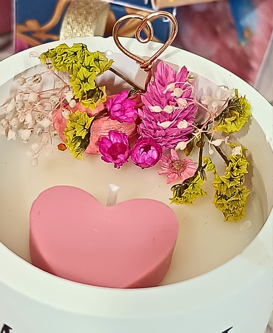 Bougie Parfumée artisanal Énergétique - Pierre naturelle Quartz rose et fleurs séchées naturelles