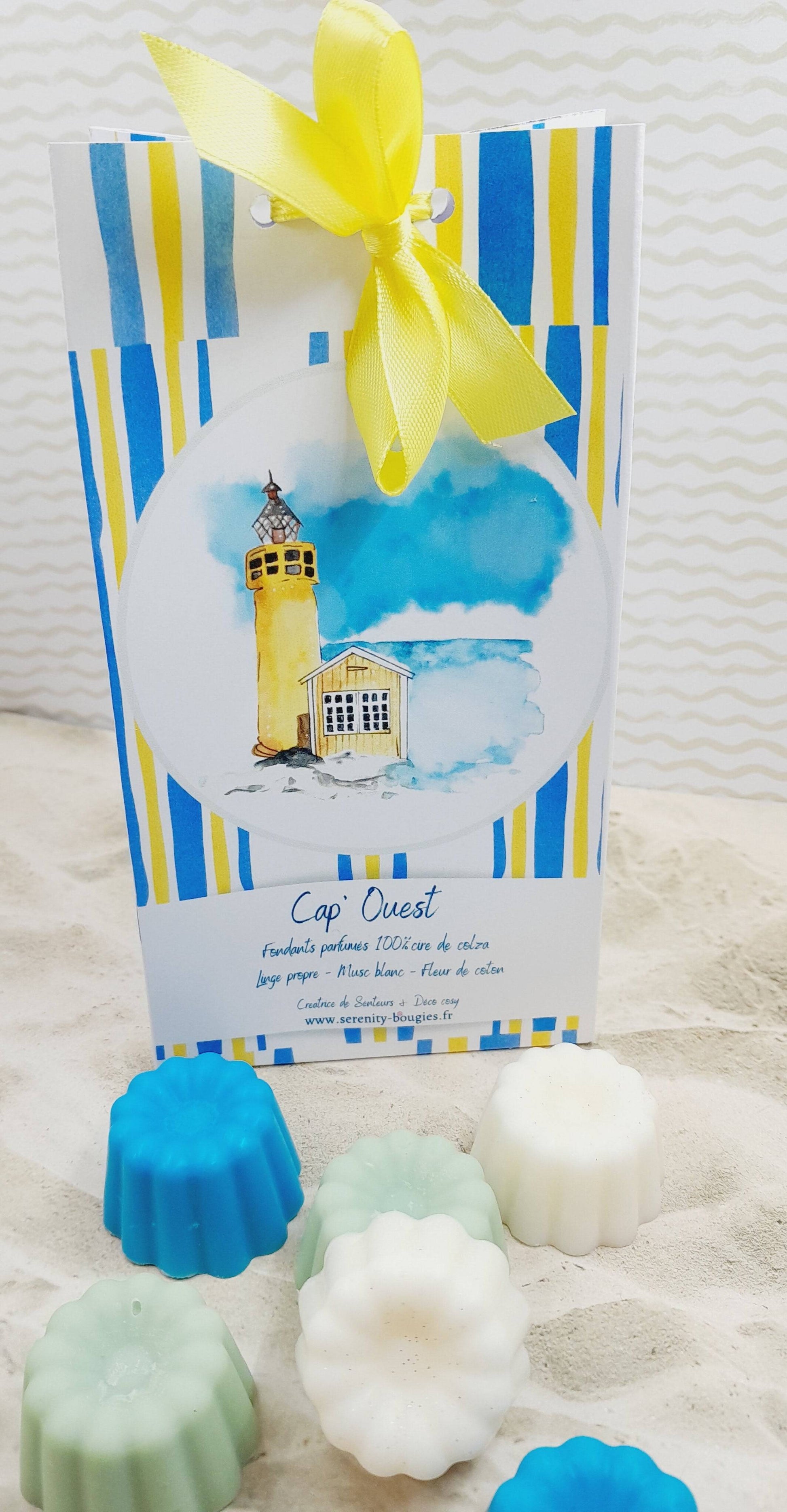 Retrouvez dans le coffret "CAP OUEST " 6 Fondants parfumés qui vous offrirons une découverte olfactive qui vous transportera dans une ambiance D'air frais et de propreté dans votre maison!
